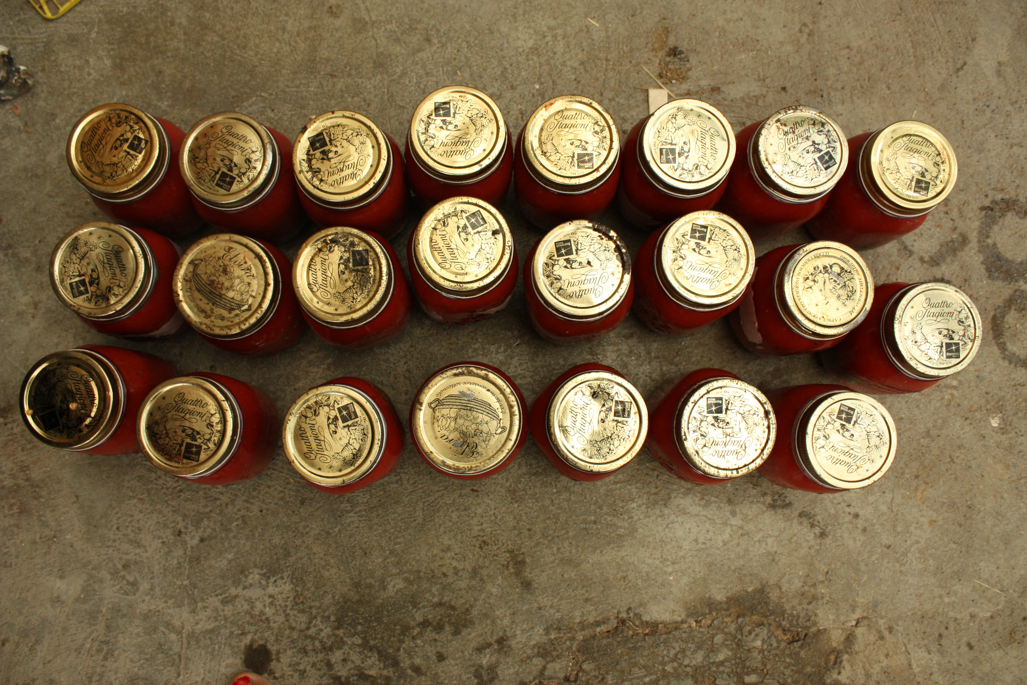les stériliser: faire bouillir dans une marmite durant 2h et laisser refroidir -( mettre des torchons pour éviter la casse) sortir les pots et les mettre dans un endroit sec et à l’abris de la lumière.