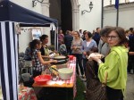 11 membres de l’association étaient du voyage- et cela juste après le festival Bella ciao qu’ils venaient à peine de terminer! Une réelle expédition! certains ont pris l’avion, et d’autres ont transporté en voiture tout le matériel- (1100 km! ) Dans ses valises l’association a apporté en plus de son enthousiasme et de sa chaleur humaine, le Bilig, des objets d’artisanat de ses adhérents tels Tota &co, des informations touristiques de notre région et du département ainsi que de nombreuses spécialités culinaires normandes et bretonnes – Pourquoi bretonnes? car les italiens confondent nos deux régions, aussi ce fut l’occasion de goûter ces saveurs inédites et artisanales, du cidre normand au chouchen breton, en passant par les crêpes et les biscuits au beurre salé- tout en écoutant de la musique entrainante bien de chez nous-