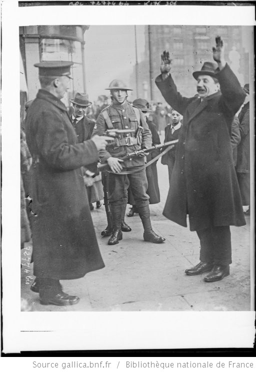 La guerre civile en Irlande , passant arrêté et fouillé par un policeman : Auteur : Agence Rol. Date d’édition : 1922 Archives BNF